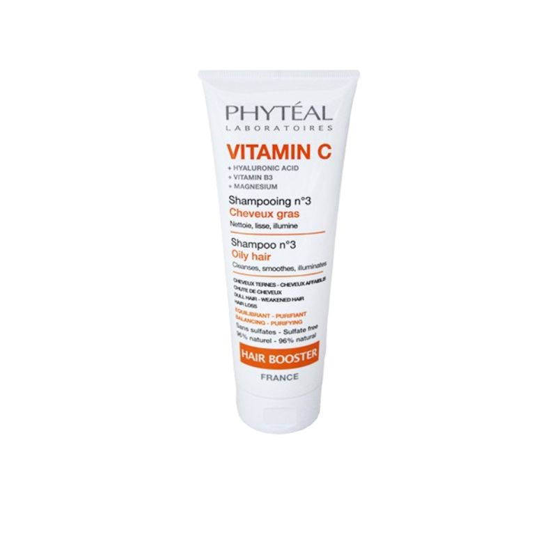 PHYTEAL VITAMINE C SHAMPOOING BOOSTER N°3, conçu pour les cheveux gras, ternes ou sujet à l’excès de sébum,est un soin capillaire qui nettoie efficacement le cuir chevelu tout en contribuant à purifier, lisser et illuminer visiblement la fibre capillaire.